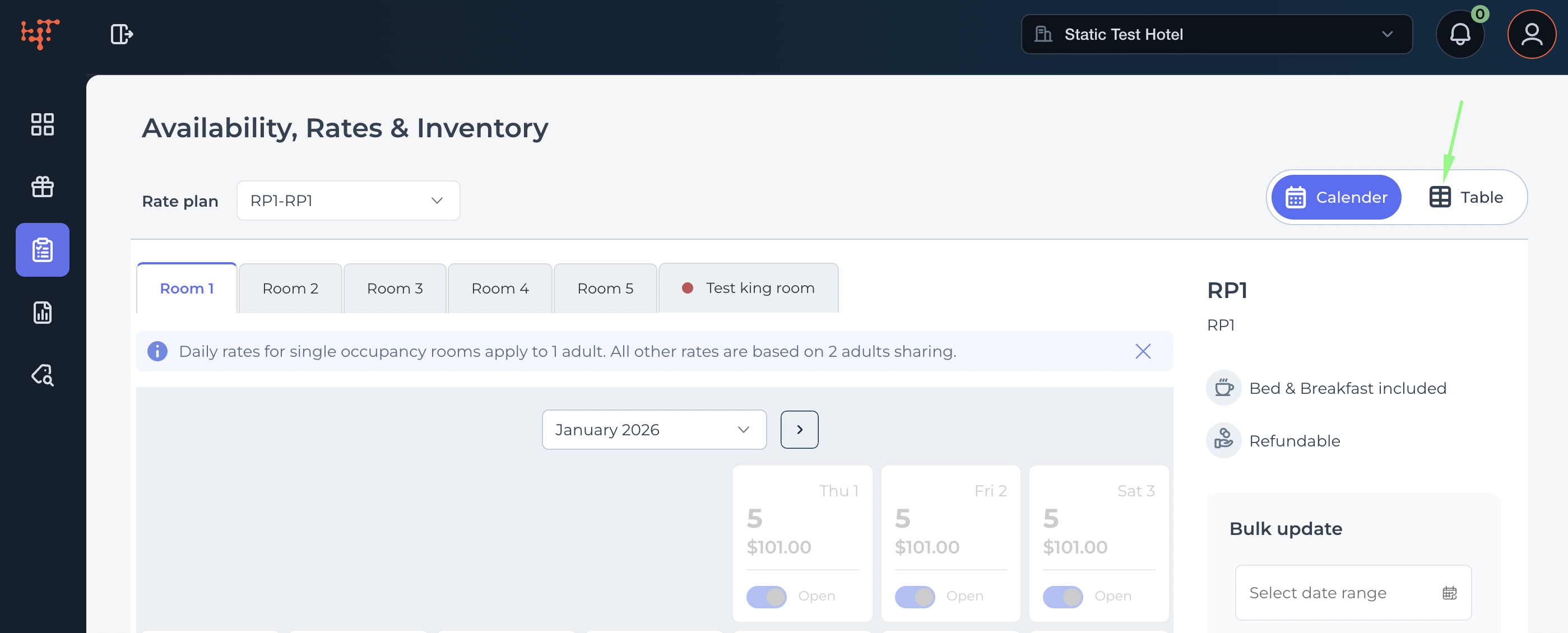 - Click the Availability, Rates & Inventory icon on the left navigation panel.