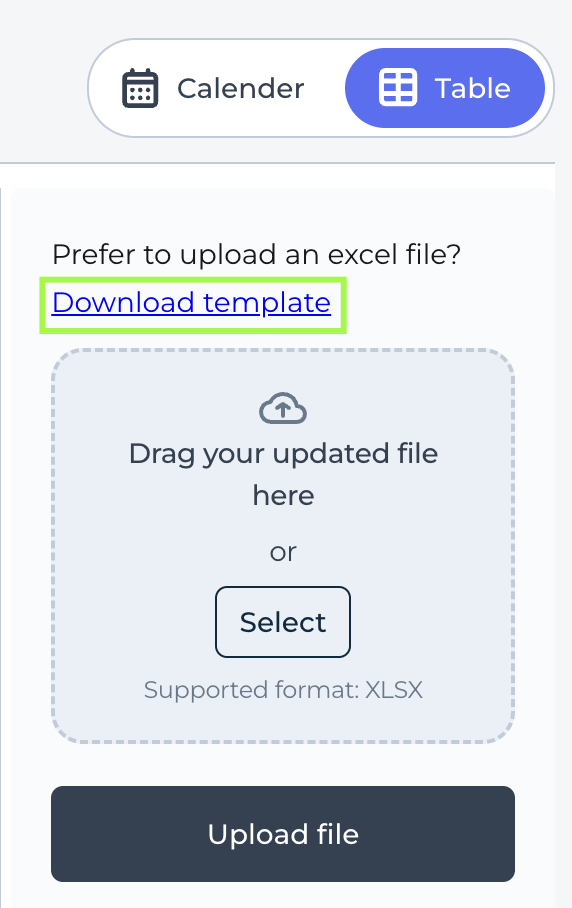 - After a successful upload, you can view and manage your ARI from the Manage ARI Tabular View or the Quick view calendar.